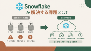 Snowflake Snowflakeが解決する課題とは?従来のデータ基盤との違いを図解で解説 Snowflakeとは何か?従来のデータウェアハウスの課題とSnowflakeが解決するポイントを図解でわかりやすく解説します。Snowflakeアーキテクチャや仮想ウェアハウスの仕組みも初心者向けに説明。 2026.03.13 Snowflake