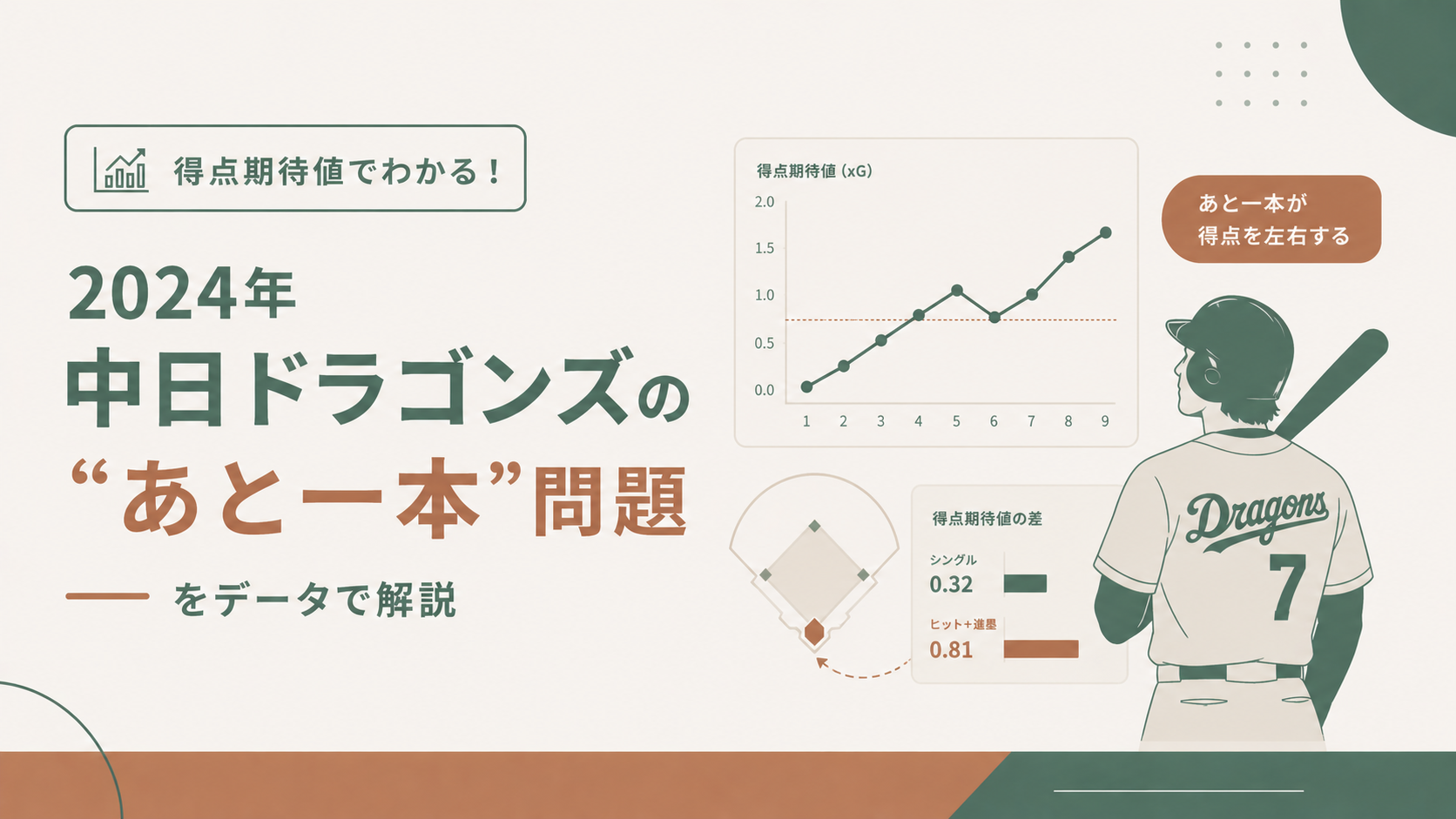 こんにちは、今回はプロ野球の得点期待値について、中日ドラゴンズの2024年シーズンデータをもとに分析した内容をお届けします。