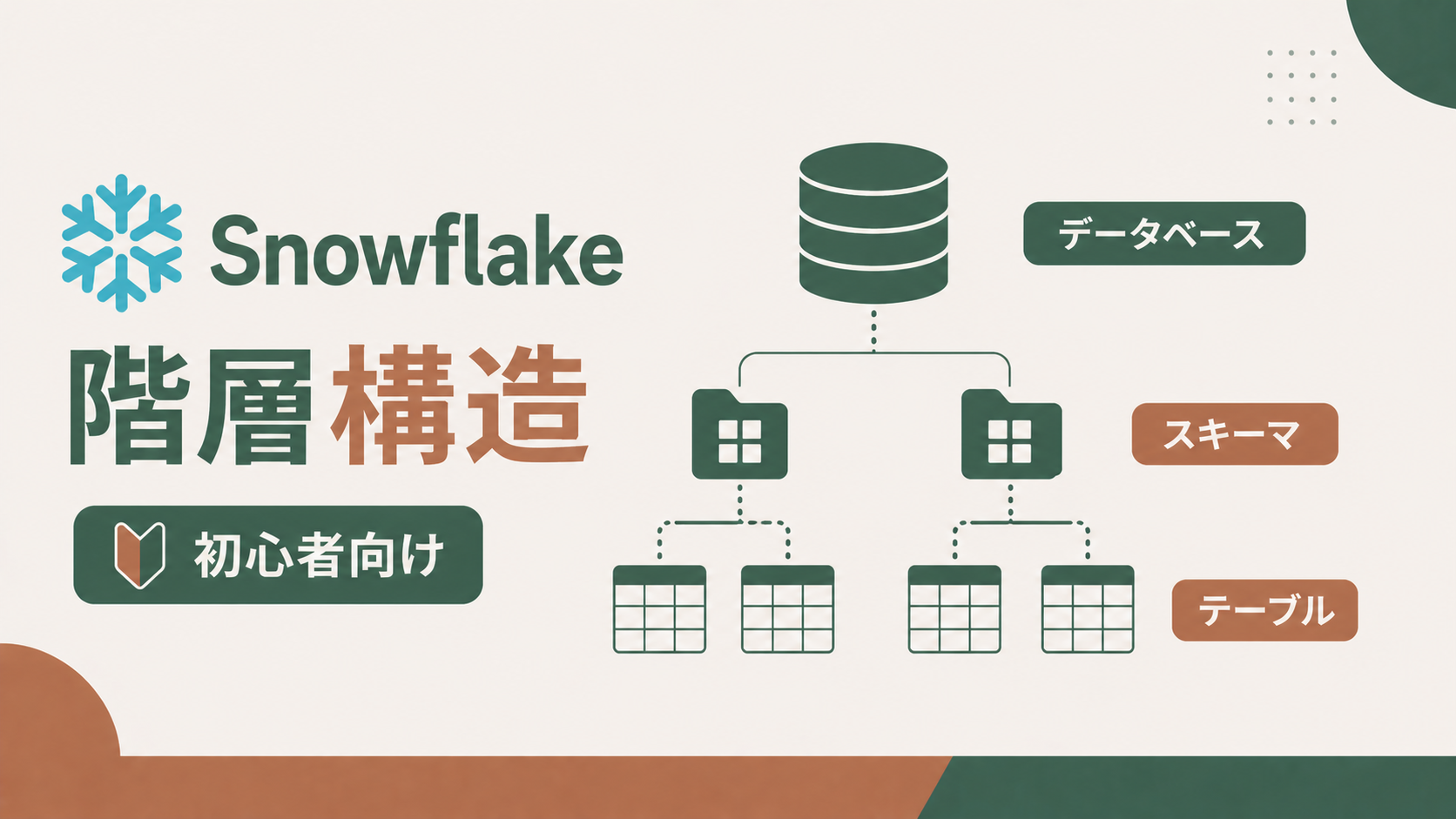 この記事を読むと、Snowflake データベース 階層構造の仕組みが理解でき、自分でテーブルを作るときに「どこに作ればいいのか」迷わなくなります。SQL初心者でもイメージしやすいように、身近なたとえも使いながら解説していきますね!