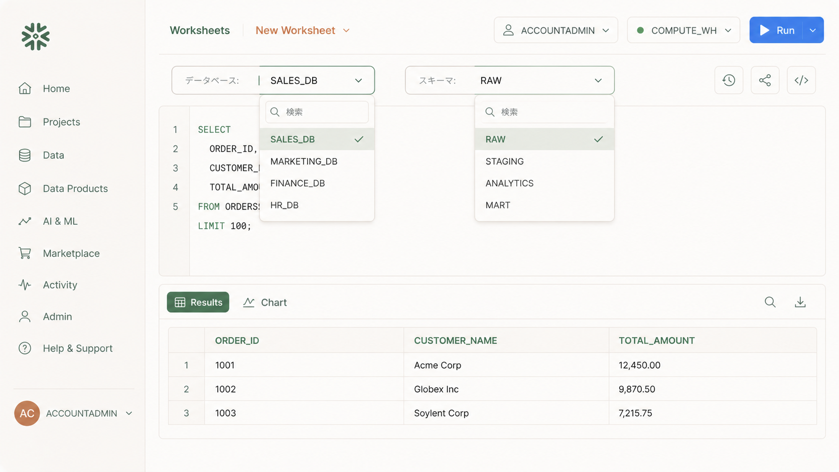 - Snowsightの画面構成と基本操作を初心者向けにやさしく解説 – SQLを実行する画面の使い方をマスターしよう