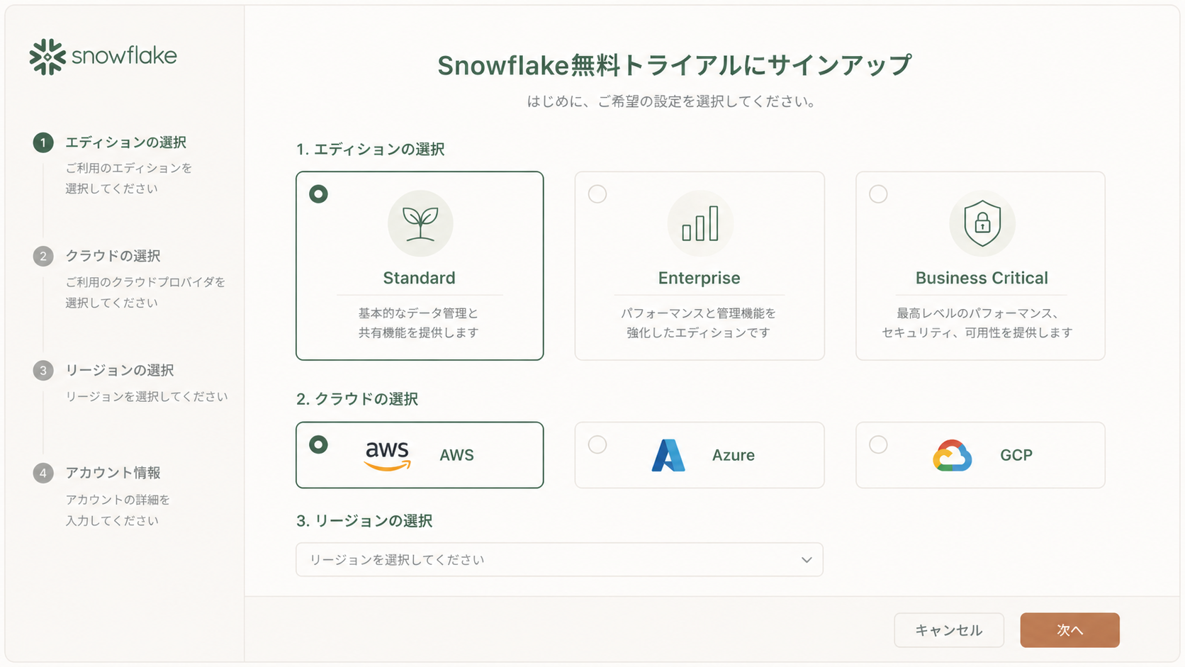 - Snowflakeエディションの違いと選び方を初心者向けに解説 – サインアップ時のエディション選びで迷ったらこれ